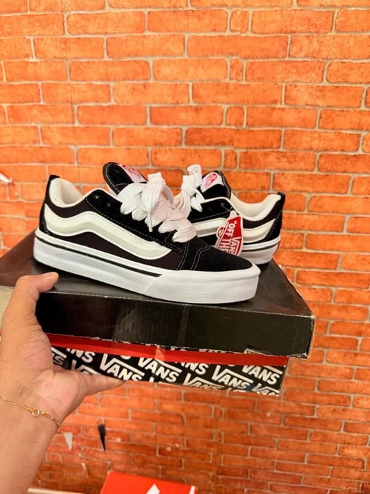 Um estilo “volumoso” típico dos anos 90 que foi inspirado no tênis de cano baixo da Vans. O Knu Skool é a interpretação contemporânea de um estilo clássico dos anos 90, caracterizado por sua lingueta volumosa e Sidestripe Vans moldada em 3D, com acabamento marcado por cadarços oversized e robustos. Com perfil marcante e detalhes em estilo dramático, o Tênis Knu Skool Black True White brinca com o original Old Skool enquanto mescla um ícone do passado com as tendências do presente.